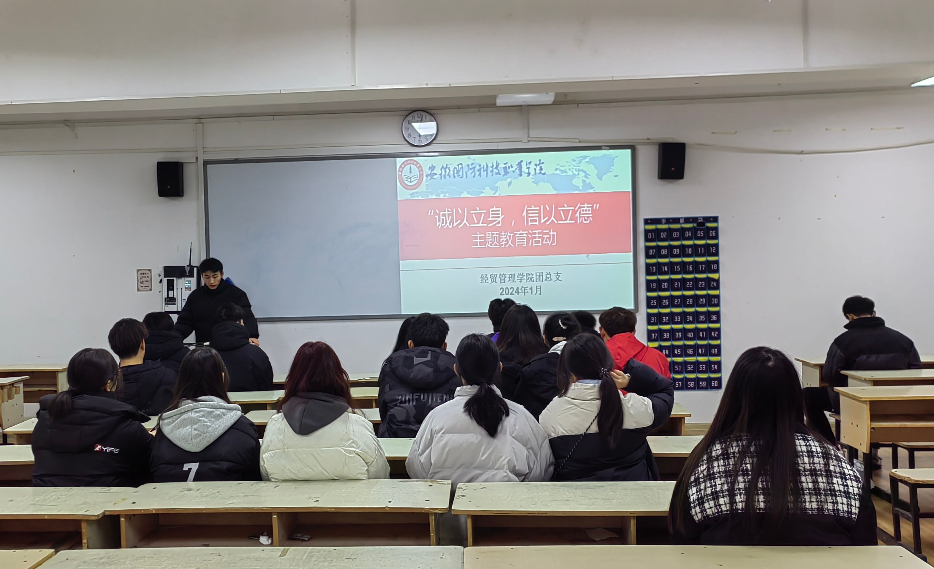 本网讯(学生通讯员 李张鹏)人无信不立,业无信不兴,国无信不强。为践行社会主义核心价值观,引导学生树立诚信理念,培养诚信品质,全面加强诚信建设,积极营造诚信守法的育人环境。1月2日晚,经贸管理学院各班开展了“诚以立身,信以立德”主题团日活动。