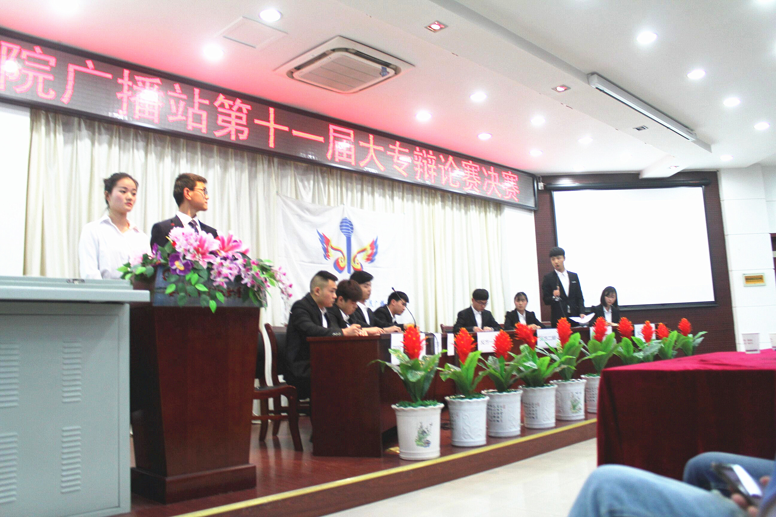 4月20日晚六点,由院团委主办、院广播站承办的学校第十一届大专辩论赛决赛在图书馆报告厅顺利举行。此次比赛经过三轮选拔,最终信息系代表队和院学生会代表队在决赛中展开冠军争夺战。前来观看的学生挤满了报告厅,现场气氛十分活跃。