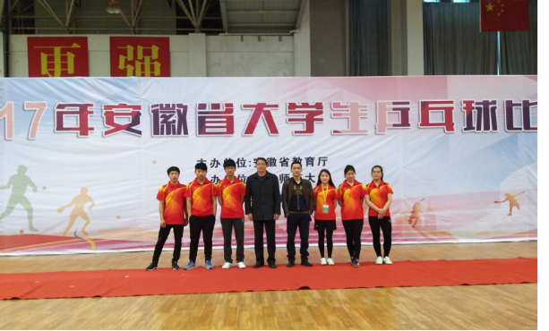 3月17日-3月21日, 2017年安徽省大学生乒乓球赛在安徽师范大学体育馆举行,此次比赛由安徽省教育厅主办,安徽师范大学承办。全省共有31所本科学校和22年高职院校1约400余名运动员参加此次比赛,经过4天的激烈角逐,我院乒乓球队荣获男子团体三等奖、女子团体三等奖,陈锦辉同学荣获男子单打三等奖。