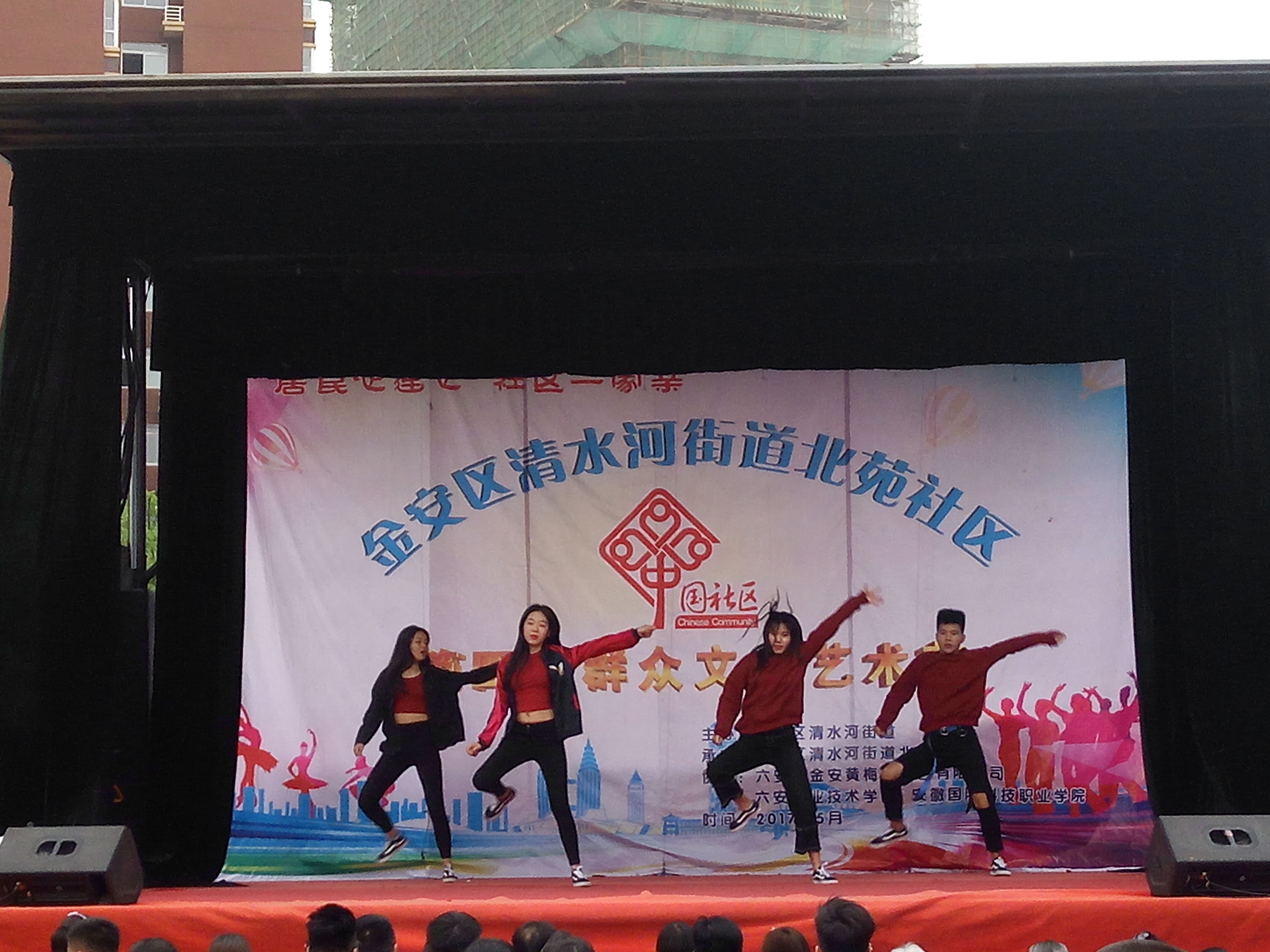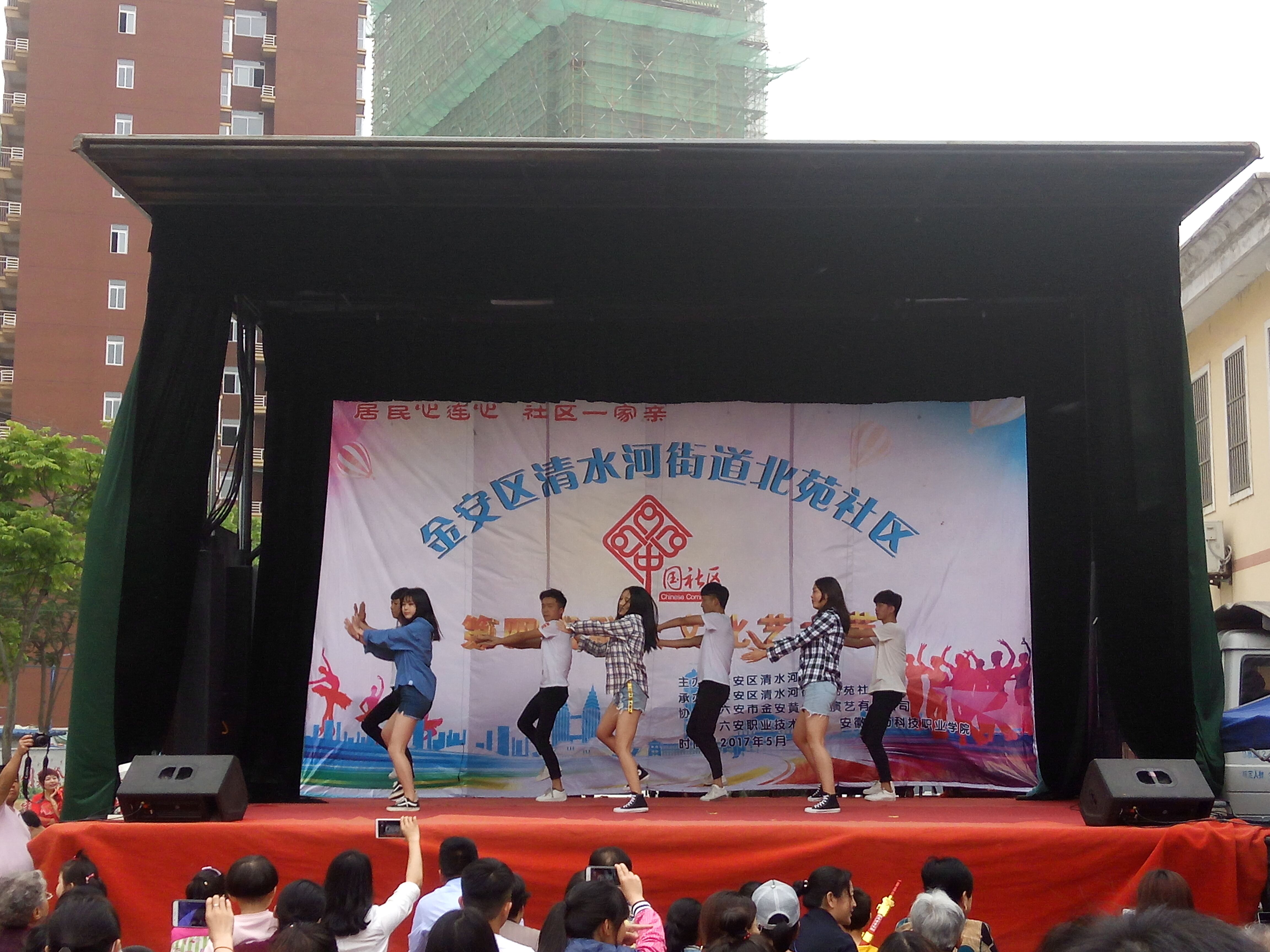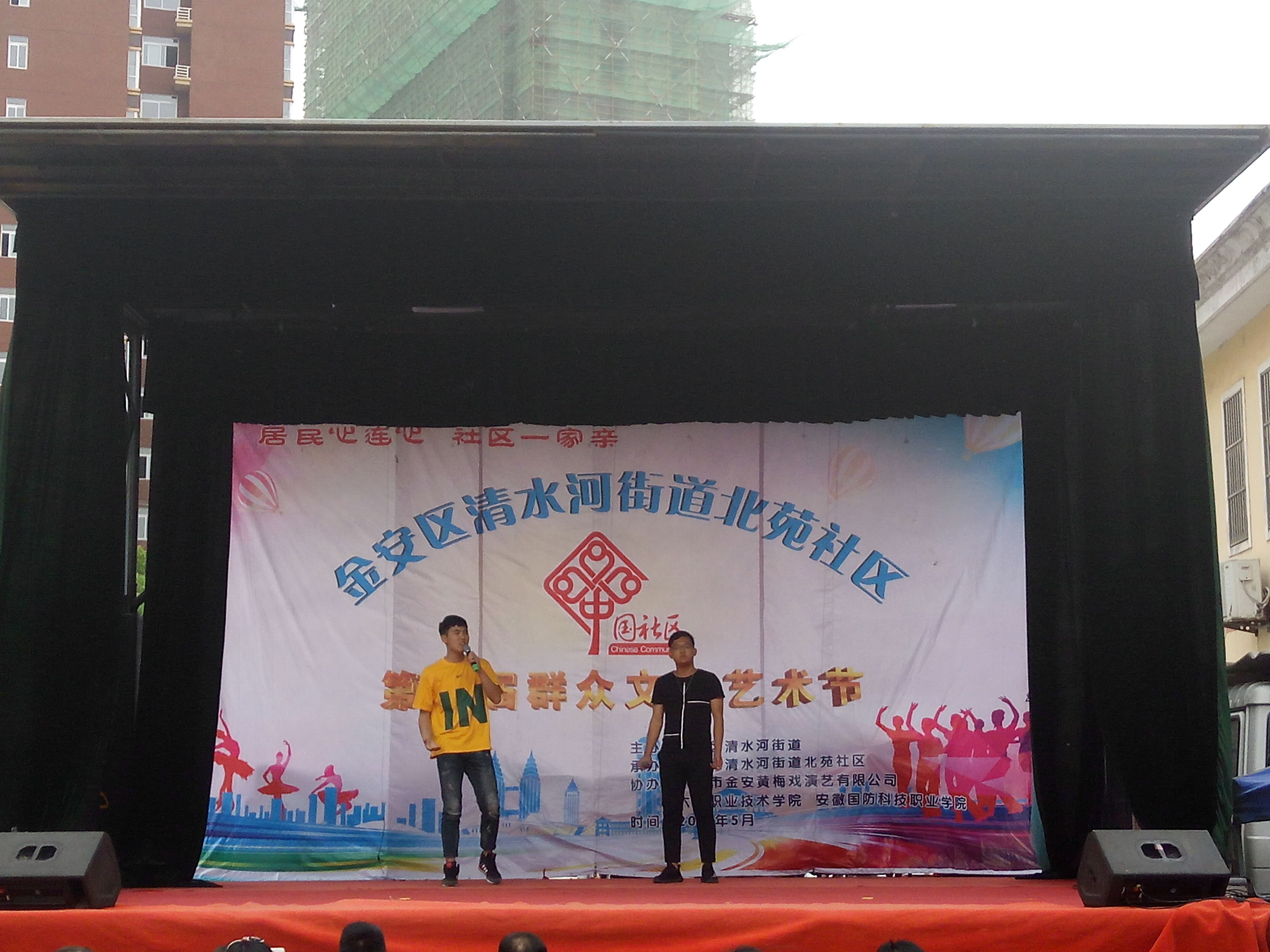 5月6日下午,万象城体育awcsport青年志愿小分队前往金安区清水河街道北苑社区开展文明城市创建志愿者服务进社区活动,弘扬青春正能量。活动现场,我院志愿者们向社区居民表演节目,与居民手拉手,通过文艺演出的形式向居民宣传创建文明城市、文化进社区工作,充分体现“居民心连心,社区一家亲”。