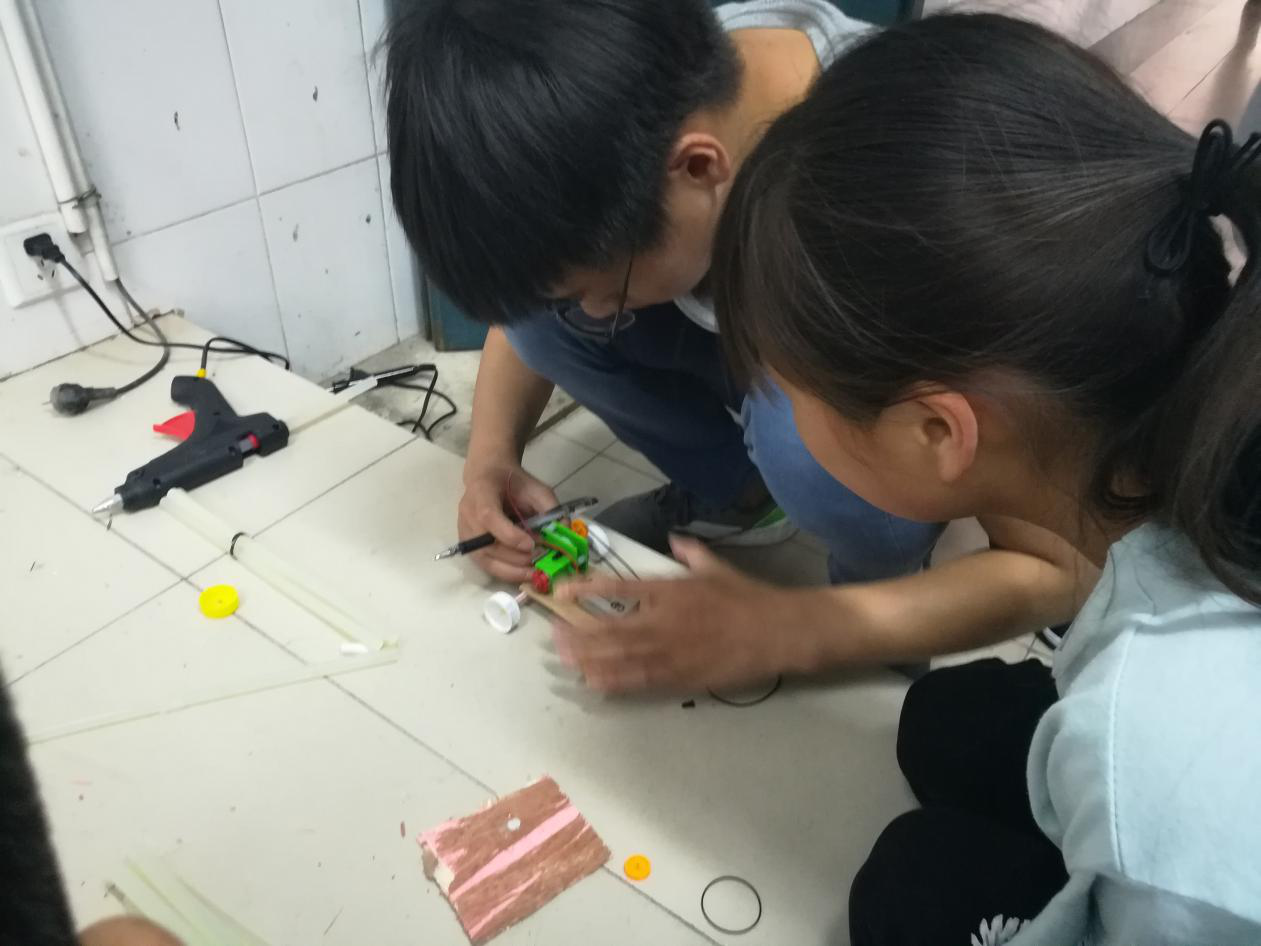 活动现场同学们各个争先恐后,发挥出自己丰富的想象力,手脑并用,认真的制作着属于自己的“小车”。