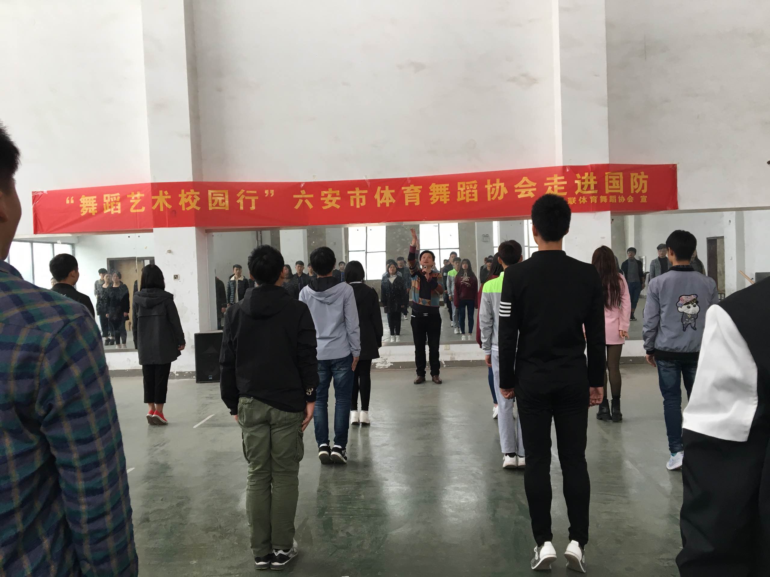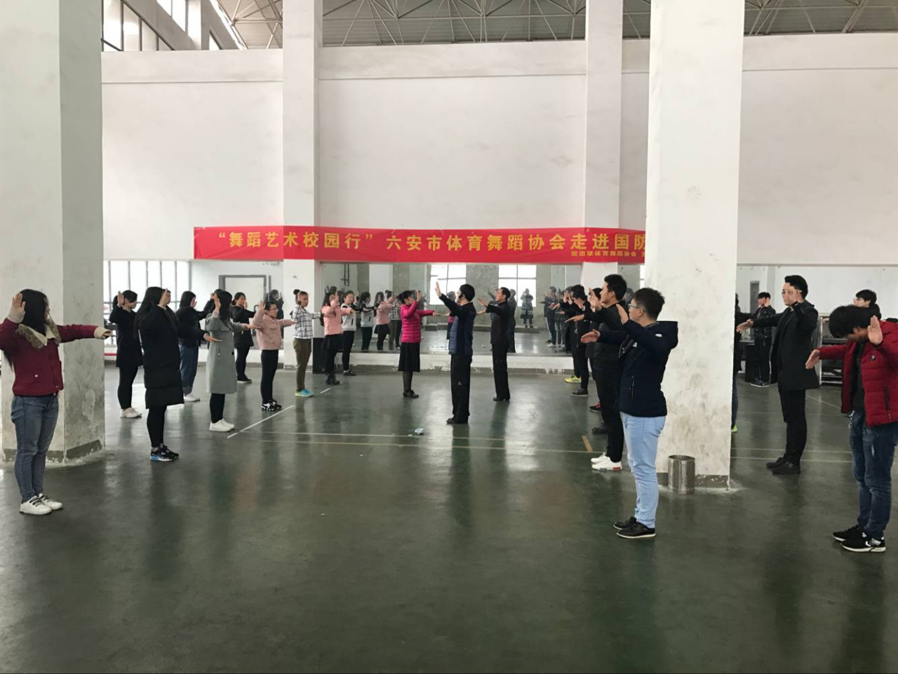 每周五下午四点,六安市体育舞蹈协会派出专业体育舞蹈老师分别就体育舞蹈中每个舞种进行全面讲解,并实践教学。让我院学生参与和体验体育舞蹈,享受舞蹈健身的快乐,感受体育舞蹈的魅力。