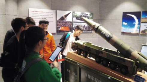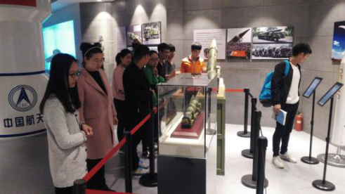 下午四点,同学们在社团指导老师陈思的带领下来到位于图书馆一楼的国防教育体验馆。参观了航空、舰船、枪械、坦克、飞机、核导弹等展区。解说员向同学们讲述了中国国防的基本知识;体验馆的影视录像阐述了中国国防的崛起;各种领先于世界的先进武器令同学们感到自豪。