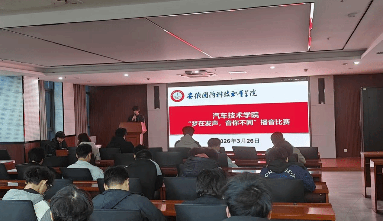 本网讯 为繁荣校园文化氛围,发掘校园播音主持新秀,汽车技术学院于3月26号在产教融合第二楼报告厅成功举办“梦在发声,音你不同”播音主持大赛。本次活动由汽车学院团总支学生会文体部举办,吸引了学院各专业学生踊跃参与,为学子搭建了展现语言素养与综合能力的舞台。