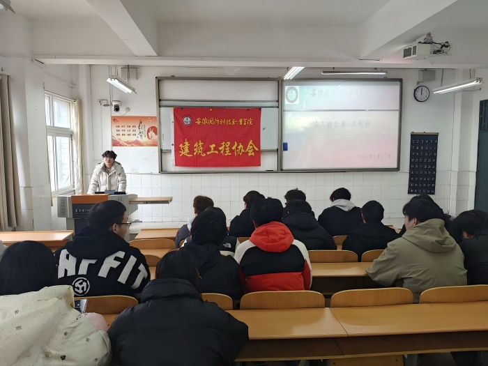 本网讯(学生通讯员 訾佳豪) 为培育换届后协会骨干,明确新学期工作方向,近日,建筑工程造价协会在二教105召开2026年第一次工作例会。本次例会由会长杨奥主持,协会指导老师刘贞贞、全体新成员参加了会议。
