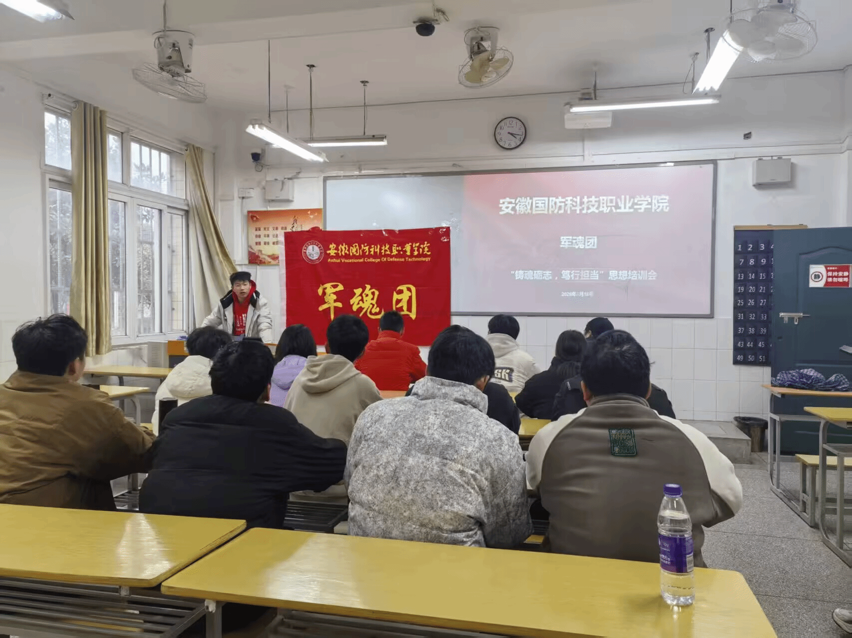 本网讯(学生通讯员 唐红斌)为传承红色基因、弘扬军魂精神,筑牢社团高质量发展的思想根基,3 月31日,军魂团功能性团支部在“一站式”学生社区开展“铸魂砺志 笃行担当”思想培训会。全体军魂团骨干力量参与培训会。本次培训会由军魂团会长唐红斌主持。