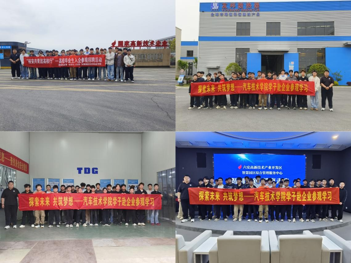 本网讯(学生通讯员 孙雨恒)为深化产教融合,搭建校企供需对接桥梁,助力毕业生精准锚定职业方向,根据学校团委工作安排,4月8日下午,汽车技术学院团总支组织学生参与“裕安共青团高校行”活动,先后走进杭萧钢构(六安)有限公司、友邦散热器(安徽)有限责任公司、天通(六安)新材料有限公司及六安高新区双创大厦,开展沉浸式参访学习。