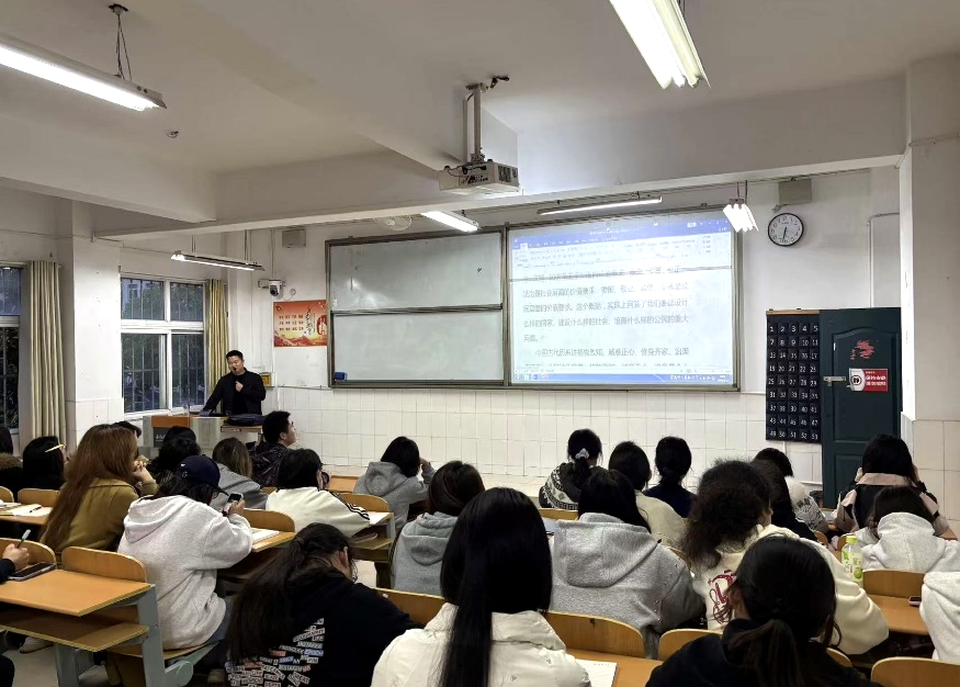 团课现场,陈玮围绕“扣好人生第一粒扣子”授课主题,紧密结合青年成长规律、校园学习生活实际以及新时代青年的使命担当,深入浅出地阐释了“扣好人生第一粒扣子”的深刻内涵与实践要求。授课过程中,他从理想信念树立、道德品质锤炼、学业本领提升、责任担当践行四个维度展开讲解,叮嘱入团积极分子及联系基层团支部成员要坚定听党话、跟党走的信念,自觉践行社会主义核心价值观,在日常学习中勤学笃行、精益求精,锤炼过硬本领;在生活中明辨是非、严于律己,涵养优良作风,始终保持积极向上、奋勇争先的青春姿态,以团员的标准严格要求自己,努力争做有理想、敢担当、能吃苦、肯奋斗的新时代好青年。