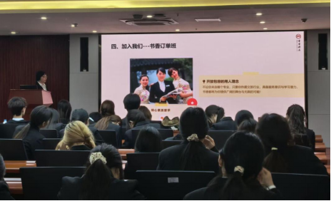 本次活动延续“现代学徒制·启航酒店人——企业宣讲与拜师仪式预热”主题,邀请校企合作企业书香酒店集团委派人力资源负责人担任主讲,围绕酒店品牌发展、数字化运营应用、现代学徒制培养方案及往届学徒成长案例等核心内容展开讲解,重点介绍了PMS系统、OTA平台等数字化工具,以及在校学习与企业轮岗、师傅带徒等培养机制。