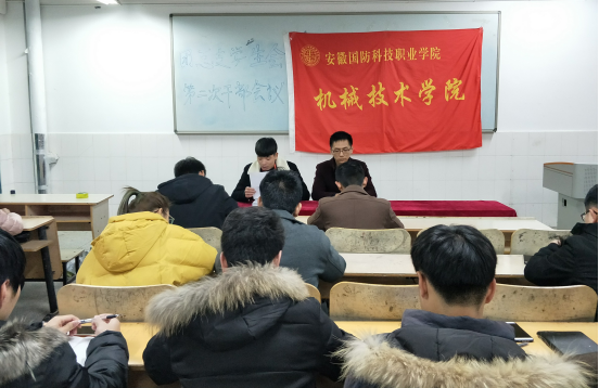 本网讯(机械技术学院 袁帅)2017年12月13日晚6点,机械技术学院团总支学生会在二教108召开第二次全体干部会议。团总支书记袁帅、学生会主席郭广涛和全体副部级以上学生干部参加了本次会议。