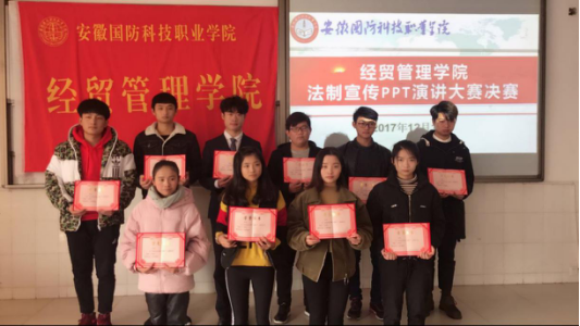 本网讯(经贸管理学院 江奇明)根据我院学生法制教育宣传周活动的安排,2017年12月19中午经贸管理学院学生会办公室于2教105教室成功举办法制宣传PPT大赛。