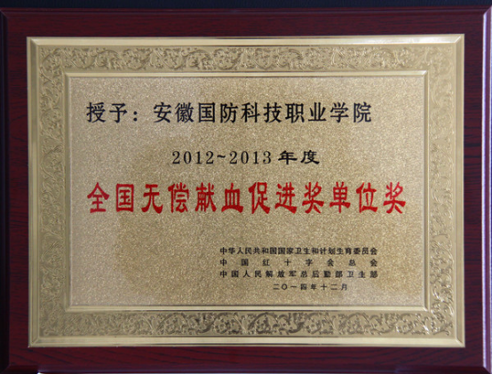 无偿献血,既是我们的义务,又是我们的光荣。大爱无疆,爱不再有荒原,帮助的不仅是师生,也是国防学子对国家和社会的回报。个人的力量虽然微薄,集体的力量却是巨大的。2014年,中华人民共和国国家卫生和计划生育委员会、中国红十字会总会、中国人民解放军总后勤卫生部联合发文授予万象城官网2012—2013年度全国无偿献血促进奖单位奖,是六安市首次获得此殊荣的单位。