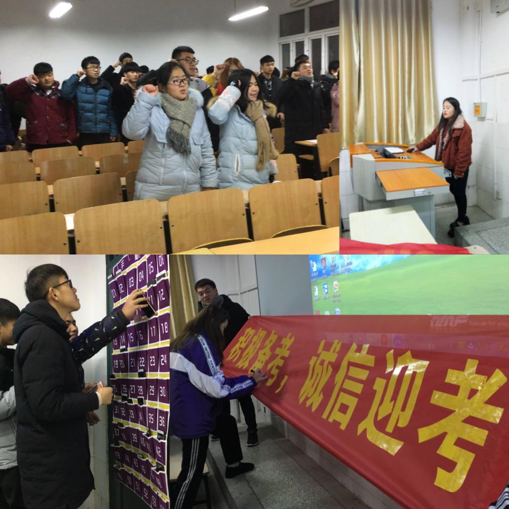 本网讯 期末考试在即,为进一步加强考风考纪,营造良好的学习氛围和公平竞争环境,帮助广大同学树立诚信考试意识,1月3日晚,经贸管理学院17级物流管理1班在2教402室召开了“积极备考 诚信迎考”的学风建设主题班会,班主任吴英老师、全体同学参会,班会由学习委员姬晴主持。