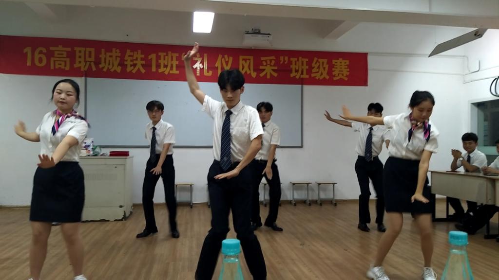 本次比赛在班级舞蹈队活力动感的开场舞中拉开了帷幕,比赛中全体学生共分为9组,每位成员主要展示各自的仪容、仪表、礼仪动作以及团队的合作能力。在整个活动过程中,9组队伍通过精心准备,在优美的背景音乐中紧张有序的展示,赛场上同学们规范的动作标准的站姿,传递着成熟和自信,温柔的笑脸洋溢着友好和真诚,赛场下同学们文明候场,为每一组同学鼓掌助威,真正表现出了文明礼仪风范。