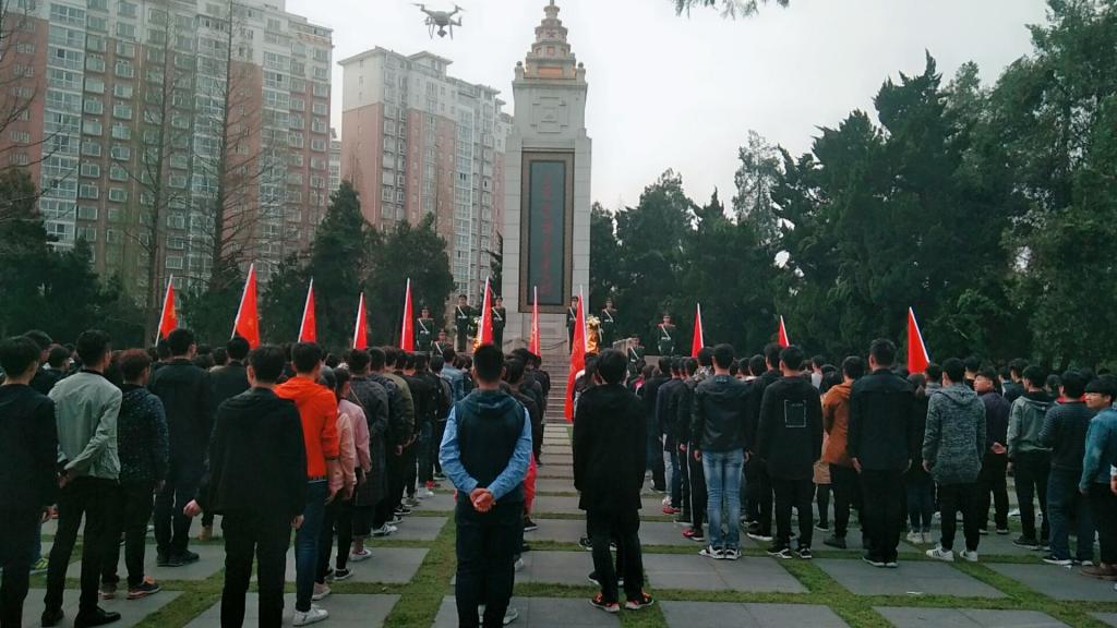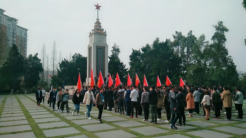 志愿者们整齐列队,步行四十分钟来到烈士陵园,通过默哀、宣誓、献花等仪式表达对烈士的缅怀和敬仰之情,随后同学们对烈士陵园进行了认真的清扫活动。