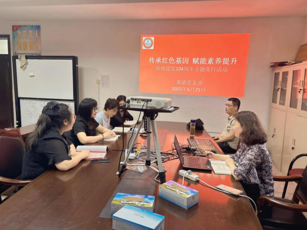 为庆祝中国共产党成立 104 周年,深入传承红色基因,提升党员教师综合素养,近日,英语党支部开展了 “传承红色基因,赋能素养提升” 主题活动。党支部全体党员,涵盖英语、艺术、中国传统文化教师齐聚一堂,共话红色文化传承与教育教学融合发展。