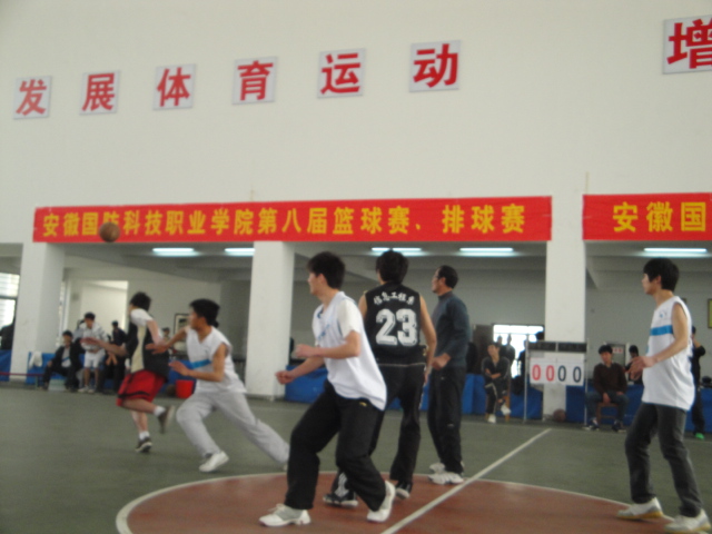 4月9日上午8:30,万象城体育awcsport院第八届大学生男子篮球赛在学院体育馆正式鸣锣开赛,激情拉开序幕。首场比赛在09管理与09信息两队之间进行,各队队员在场上激情澎湃,顽强拼搏,场下呐喊阵阵,热情助威。体院馆内人声鼎沸,热闹非凡。