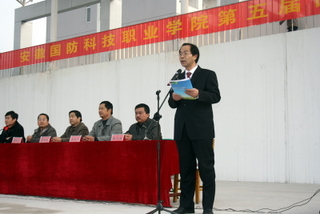 和谐校园,健康同享。11月25日上午,校新建田径场花团锦簇、旌旗招展,院第五届运动会在这里隆重开幕。院党委书记主军山出席并宣布运动会开幕,院长李麟书致辞,院党委副书记、副院长余嗣元主持了开幕式。院纪委书记朱德明,副院长冯论久,院长助理丁守宝,各系党总支书记,基础部领导出席并观看了开幕式。