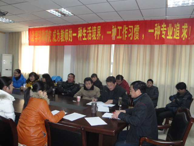 2011年12月21日下午基础部在行政楼五楼会议室组织全体教师学习教职成[2011]12号文件《教育部关于推进高等职业教育改革创新引领职业教育科学发展的若干意见》。学习会由基础部主任吴方庭主持。