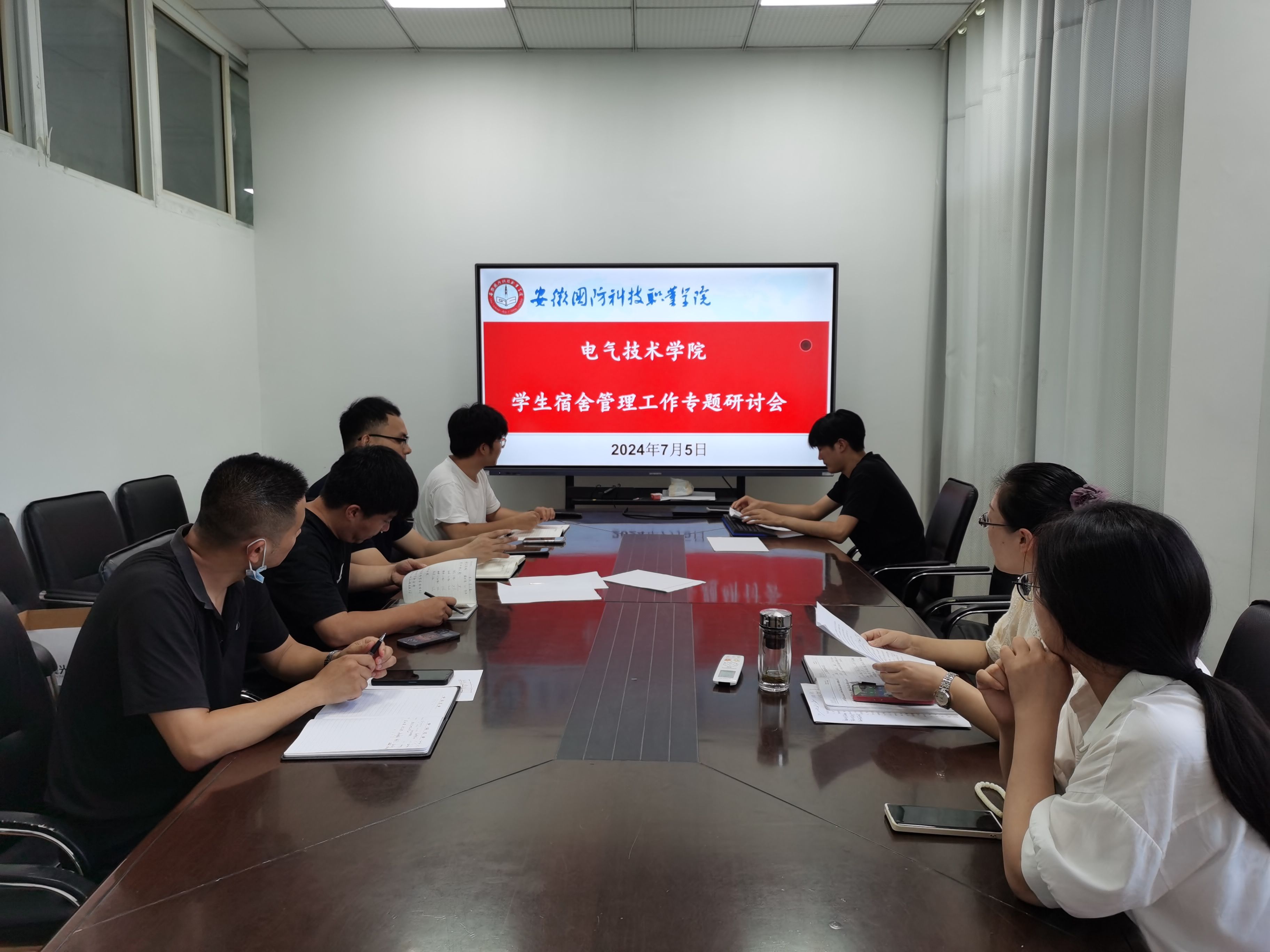 本网讯(电气技术学院 申晓伟为加强学生宿舍管理,保障宿舍安全文明,7月5日下午,电气技术学院召开学生宿舍管理工作研讨会,电气技术学院党总支副书记张丽及学院全体专职辅导员参加了会议。