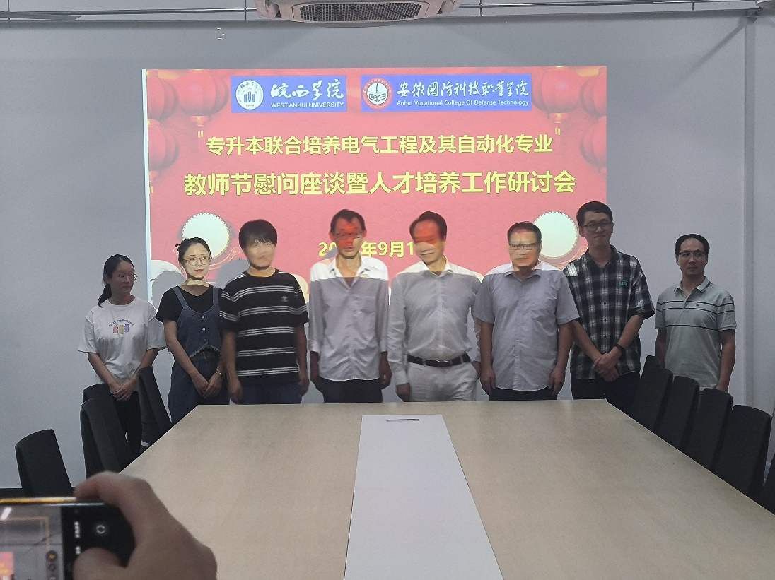 本网讯 为进一步加强与规范学校普通专升本联合培养工作,同时为营造尊师重教的良好氛围,增强教师的职业荣誉感和归属感,9月12日晚,电气技术学院在产教融合中心三楼会议室组织召开专升本联合培养电气工程及其自动化专业教师节慰问座谈暨人才培养工作研讨会。皖西学院授课教师胡昌宝教授、屈光宇教授、刘向远教授、徐峻峰老师,万象城体育awcsport电气技术学院院长李翔,党总支副书记张丽,学院副院长江治国,教研室主任程坤、王丽,实验室主任吴年祥,专业负责人任汉鼎,及部分教师参加了会议。