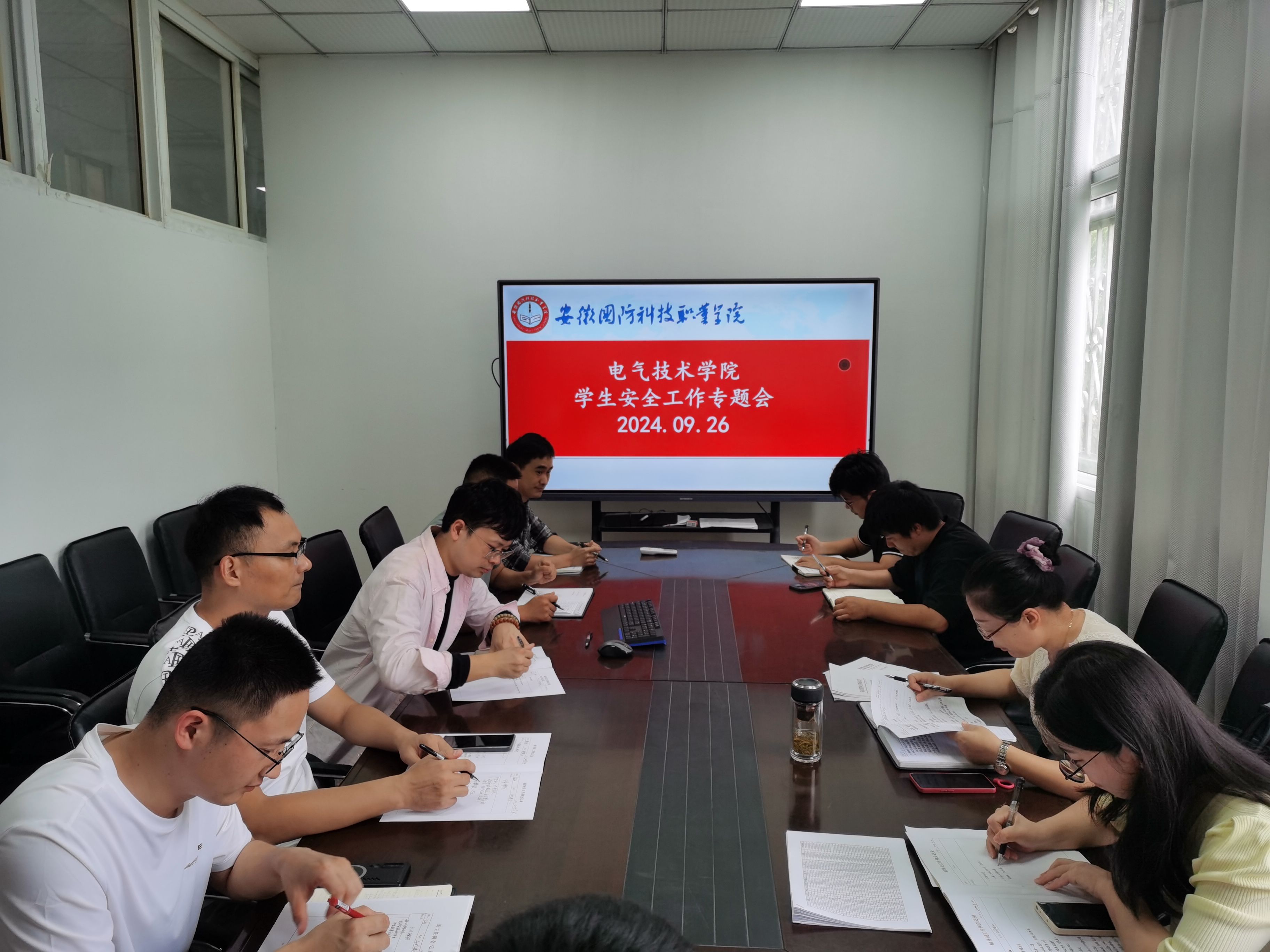 本网讯(电气技术学院 申晓伟)根据学校《关于开展2024年国庆节节前 校园安全大检查的通知》(校安函〔2024〕14号)文件精神,落实学生安全教育工作,确保师生度过一个安全、和谐的假期,9月26日上午,电气技术学院在知行楼102会议室召开学生安全工作专题会,会议由学院党总支副书记(主持工作)张丽主持,全体辅导员参会。