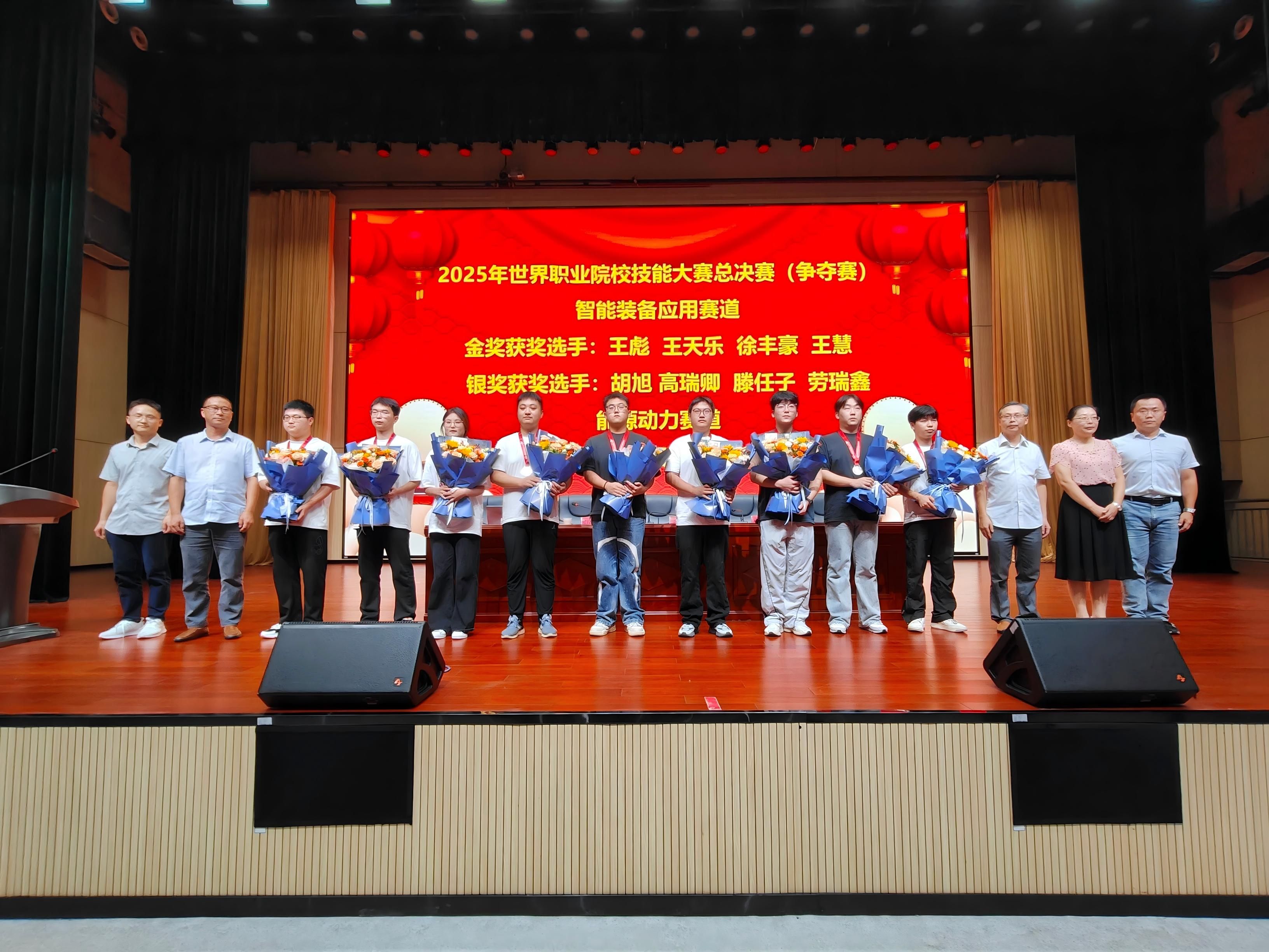 在开学典礼上,还对获得2025年世界职业院校技能大赛总决赛(争夺赛)金奖、银奖的3个团队选手进行了表彰,鼓励他们珍惜荣誉、再接再厉,在未来的技能道路上持续精进。同时,也希望全体新生能以获奖选手为榜样,树立技能成才的目标,在日常学习中刻苦钻研专业技艺,积极投身技能竞赛与创新实践,在一次次挑战中锤炼本领、超越自我,共同营造学院崇尚技能、追求卓越的良好氛围。