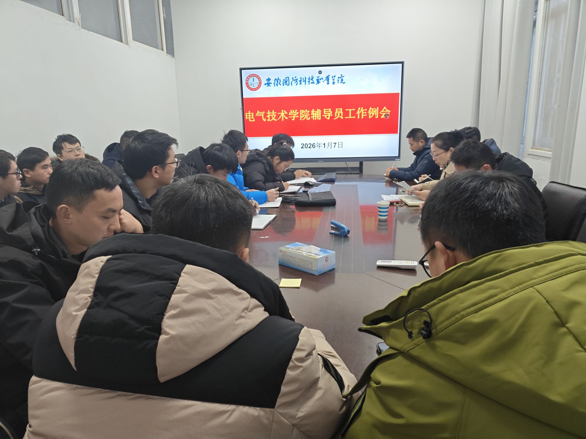 本网讯(电气技术学院 申晓伟)根据学校《关于2026年寒假前后有关学生工作安排的通知》(校学函〔2026〕1号)文件精神,1月7日,电气技术学院在知行楼102召开期末辅导员工作会议,布置学期末学生教育管理与服务工作。会议由学院党总支副书记张丽主持,全体辅导员参会。