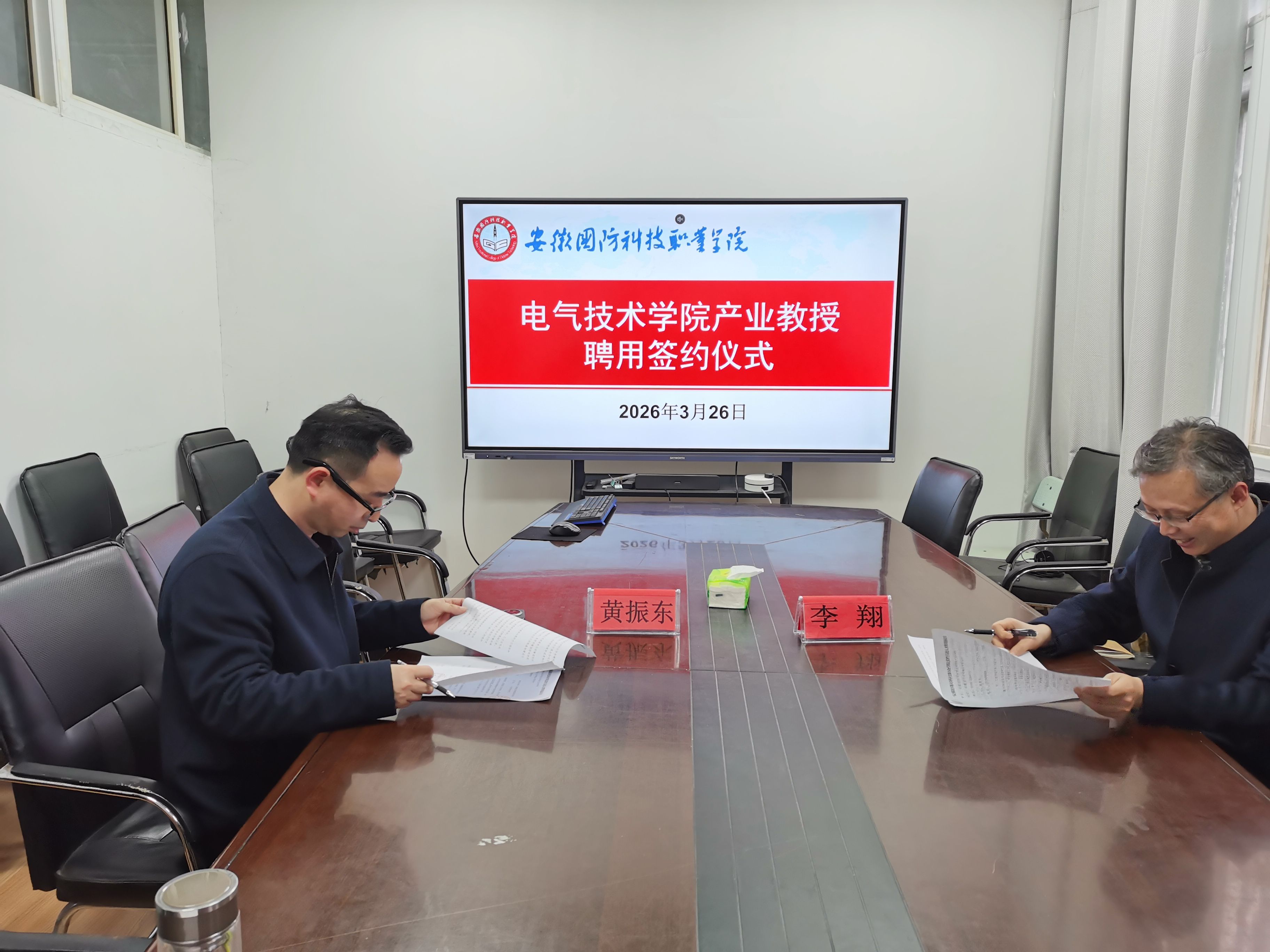 考核结束后,举行新一轮产业教授聘用签约仪式。电气技术学院与黄振东正式签订2026-2027年度产业教授聘用协议书,聘任其继续担任产业教授。协议明确聘期内岗位职责及双方权利义务等事项,为后续工作开展提供坚实保障。