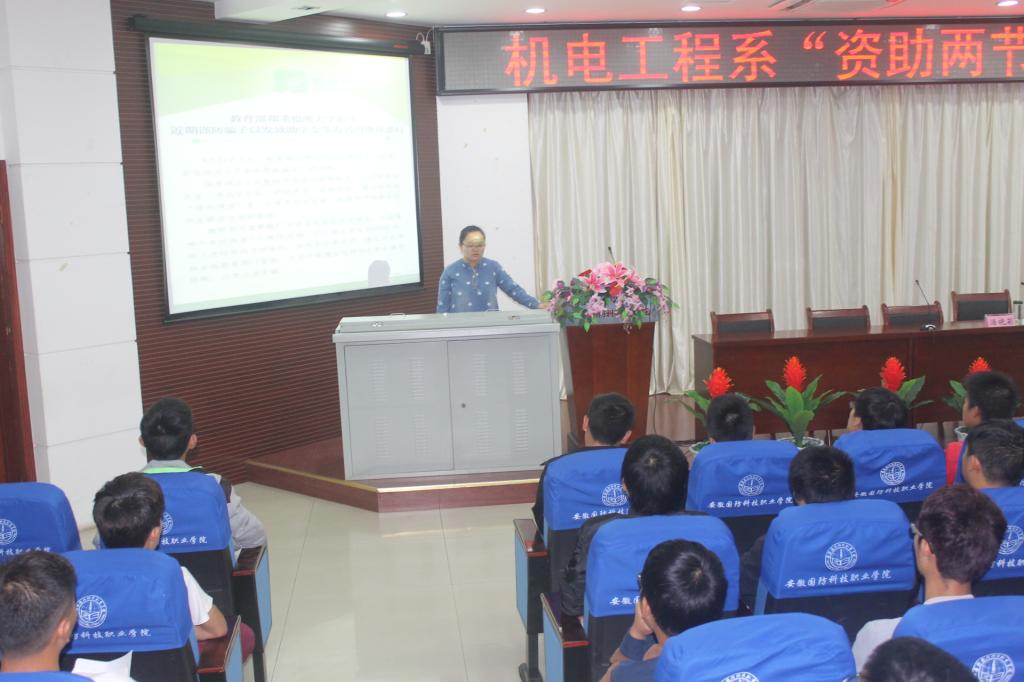 2016年10月19日下午14:00,机电工程系学生资助政策宣讲“两节课”活动在图书馆报告厅举办,由系资助专职教师汤晓莉老师主讲。汤老师全面宣讲在校学习期间国家及学校出台的本学段各项资助政策及具体的申请、发放操作办法,确保家庭经济困难学生在校期间得到有效资助。