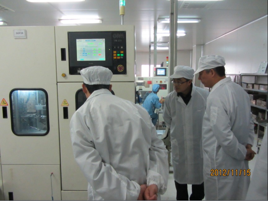 2012年11月15日 机电工程系党政领导及专业带头人陈小林、孙良平、叶启衡、李翔、谢发忠一行到安徽国晶微电子有限公司、安徽合晶电子有限公司实地考察。