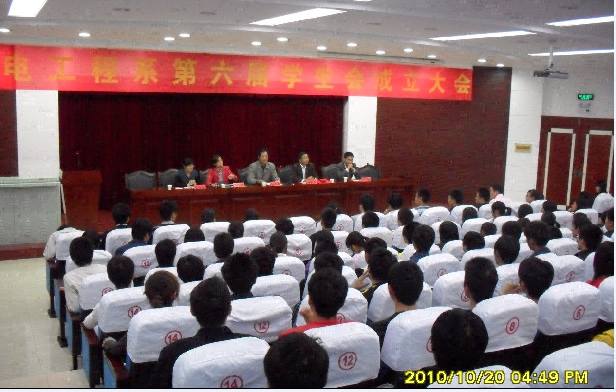 2010年10月20日下午四点半,机电工程系团总支在图书馆二楼报告厅组织召开了机电工程系第六届学生会成立大会,系党总支书记孙良平、副书记叶启衡、系团总支书记刘严、系办公室主任罗威和10级辅导员常迎梅,以及所有学生会成员出席了本次大会。