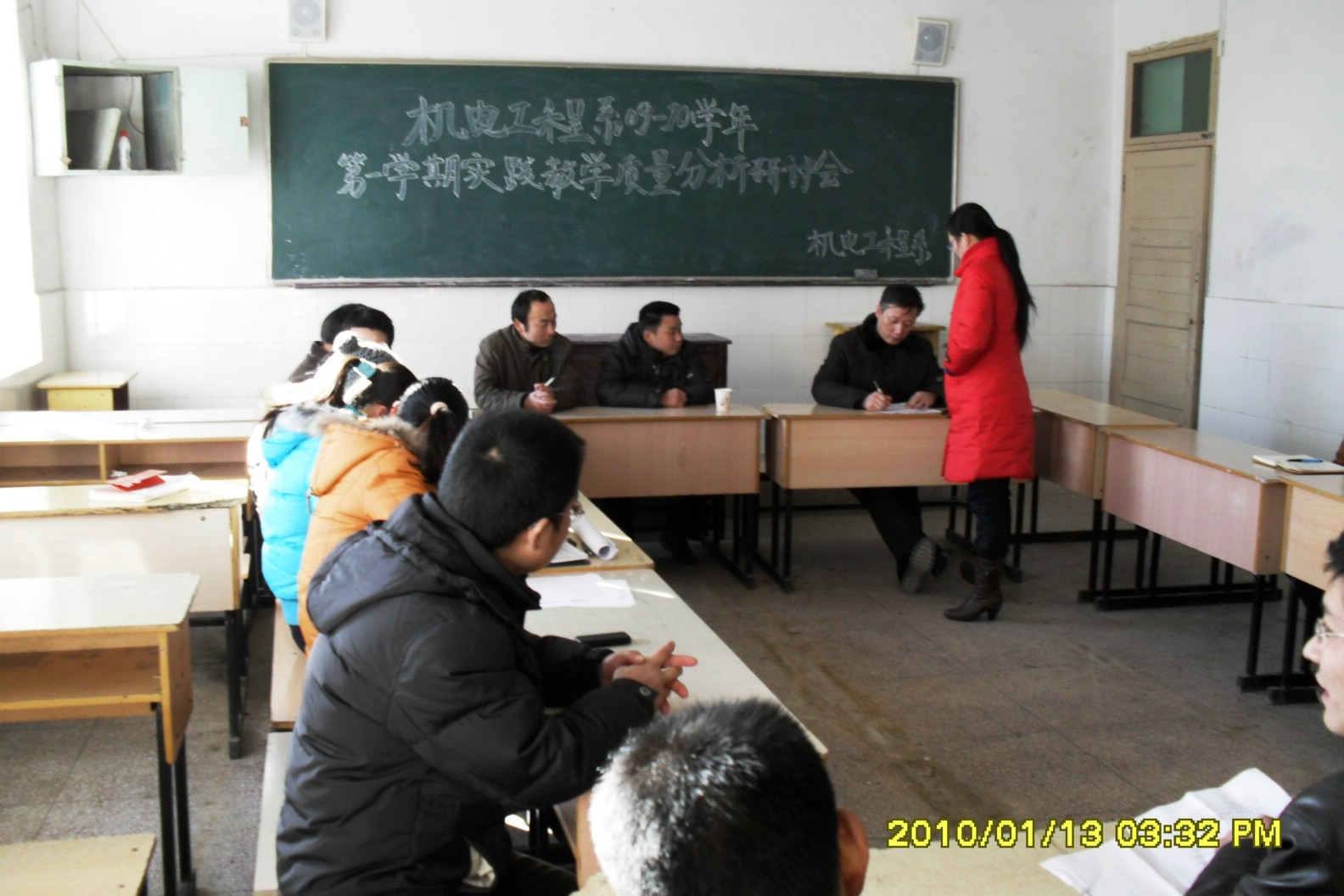 机电工程系于2010年1月13日下午15时30分,在教一楼306室组织开展2009年实践教学质量分析研讨会,参加本次会议的人员有系主任、专业实训中心主任、教研室主任、2009年有实践教学任务的指导老师以及实训管理人员等二十余人。会上各位老师认真总结宝贵经验、提出建设性的建议或意见。