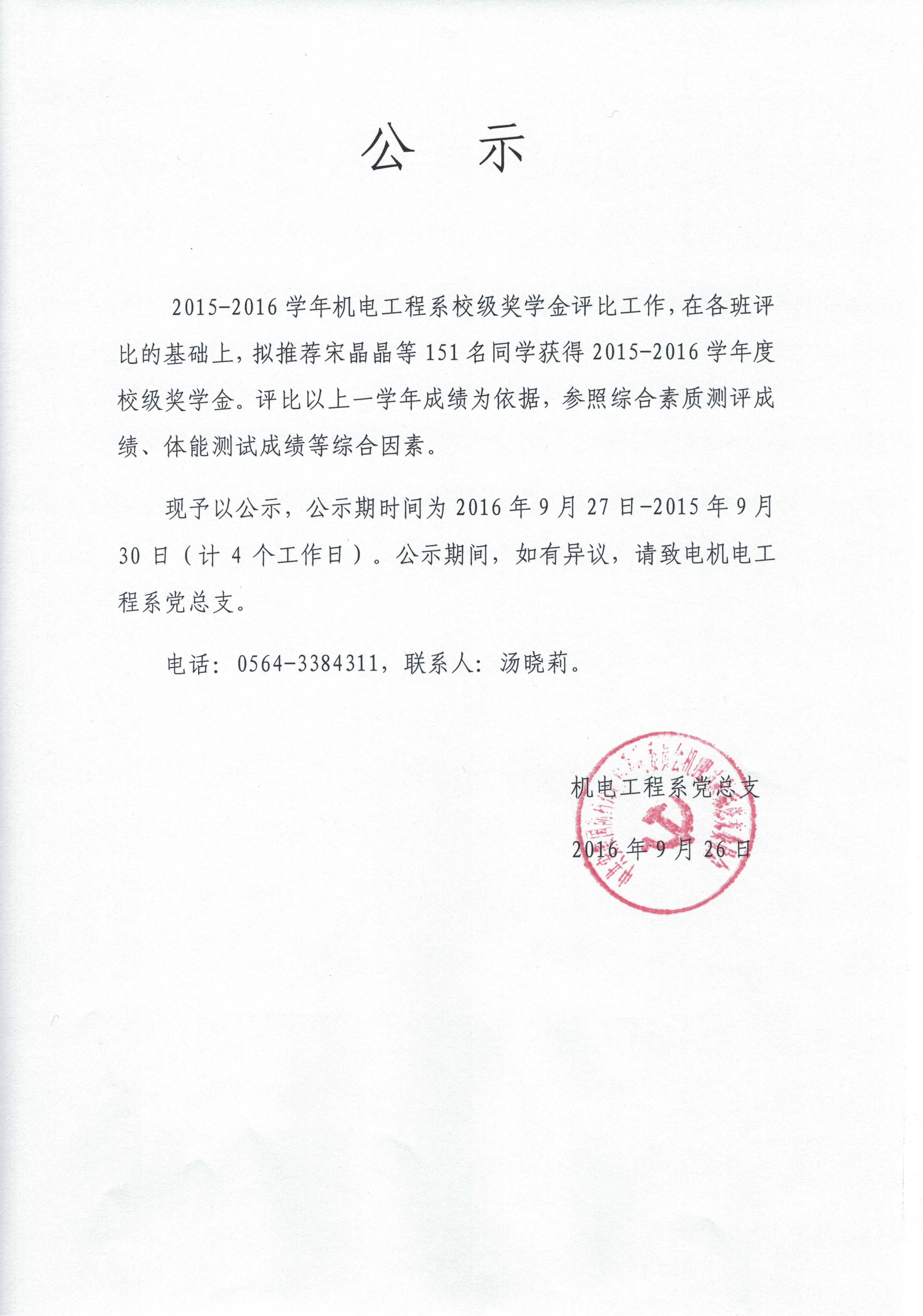 上一条:关于召开2016/2017学年第一学期机电工程系师生座谈会的通知 下一条:关于机电工程系2015-2016学年度国家奖学金评比结果公示