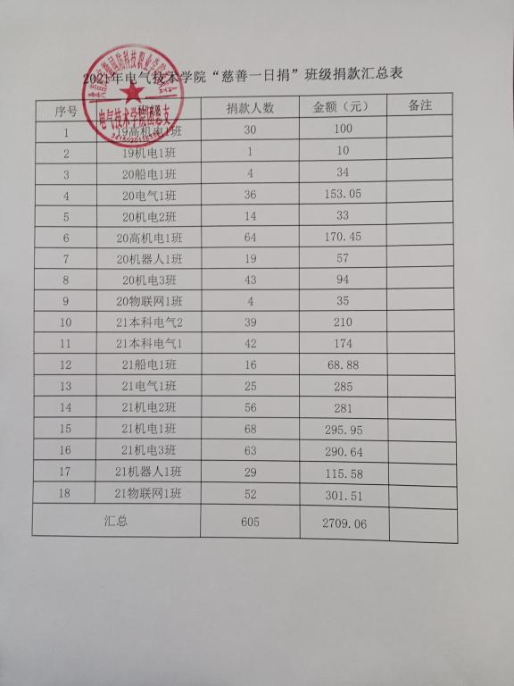 根据《关于在全校开展2021年“慈善一日捐”活动的通知》(校办〔2021〕24号)活动的通知,电气技术学院团总支积极宣传,组织在校各班级进行全民慈善、扶贫济困的自愿捐款活动,现将电气学院在校各班级收集捐款情况公示如下: