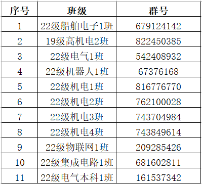 为方便师生沟通联系,电气技术学院各新生班主任创建了班级QQ群,这是经学院审核确认的唯一班级QQ群号,请各位新生核对后尽快实名入群。其它途径的群号,请谨慎加入,以免上当受骗。现将群号公布如下: