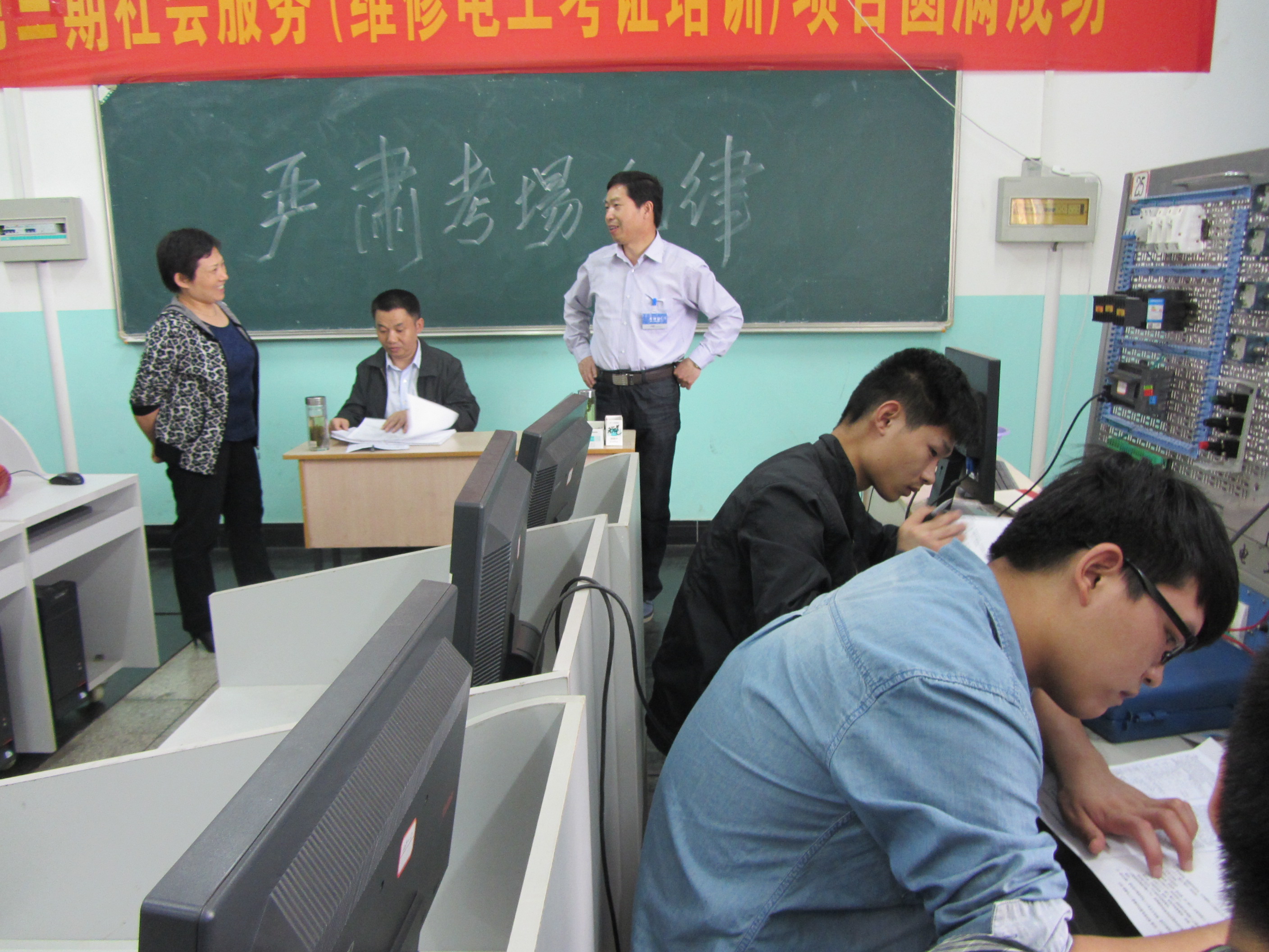 按照培训考证计划安排,在经过前期各模块的紧张培训后,12级140名各专业学生于5月17日和5月18日进行了维修电工(高级工)考证工作。本次鉴定工作按全省统考标准实施,在省及市职业技能鉴定中心的全程指导、参与和监控下,我系考评教师按规范进行监考和评判等工作,同学们在考证过程中沉着冷静、攻坚克难,在PLC控制、直流调速两个模块上发挥稳定;系实训中心在学院职业技能鉴定站的指导下考前精心准备,确保考证工作顺利实施;考评员认真负责、严格规范、任劳任怨,鉴定工作获得了巡考领导的高度评价。
