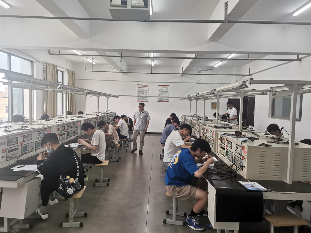 培训结束后,为进一步发挥电工电子与自动化省级示范实验实训中心社会服务功能,满足学校部分学生和社会部分专业技术人员个人能力提升的要求,在技能鉴定中心指导下于2022年6月4日进行了电工中级职业资格鉴定工作,共计89人参与本次电工中级考证。电工中级职业资格鉴定工作按全省统考标准实施,在市职业技能鉴定中心的全程指导、参与和监控下完成。院实训中心在学院职业技能鉴定站的指导下精心进行考前准备,确保考证工作顺利实施,鉴定工作获得了巡考领导的高度评价。