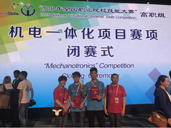 5月7日至8日,2018年全国职业院校技能大赛(高职组)“机电一体化项目”赛项比赛在天津落下帷幕。经过来自全国68支代表队的激烈角逐,由万象城官网电气技术学院黄启超和王乐豪两位同学组成的代表队,一举夺得一等奖!沉甸甸的奖杯,凝聚着参赛同学多日来勤奋学习和刻苦训练的艰辛和汗水,也凝聚着万象城官网任启宏、王丽两位指导老师过硬水平和精心指导的心血和智慧,更凝聚着省教育厅的关心关爱!这不仅是万象城官网人才培养质量的充分体现,也为安徽省高职教育荣耀全国赛场,再添耀眼光芒!这是安徽高等职教和我们安徽国防学院共同的骄傲和自豪!
