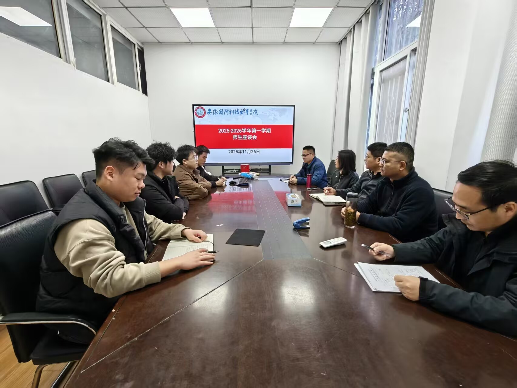 此次座谈会搭建了师生高效沟通的桥梁,既增进了学院与联合培养学生的情感联结,也为优化人才培养方案、推进教育教学改革收集了宝贵的第一手资料。电气技术学院将以此次座谈会为契机,建立常态化意见反馈与整改落实机制,持续完善联合培养模式,不断提升教育教学质量与学生服务水平,为培养高素质应用型人才筑牢根基。座谈会现场照片生动展现了师生互动交流的热烈氛围,彰显了学院以学生为中心、深耕教育教学改革的责任与担当。