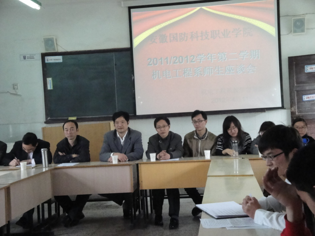 为提高教学质量,增进师生交流与了解,解决学生的问题和疑惑,机电工程系于4月11日下午在1#102、103、104教室召开2011/2012学年第二学期师生座谈会,会议按专业分成三个专场,分别由系部陈小林主任,孙良平书记、叶启衡副书记、李翔副主任主持,系属全体教师出席此次会议,机电系各班学生代表参加了会议。
