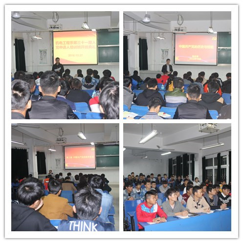 为了提高入党申请人的思想认识和理论水平,加深对党的基本理论和基本知识的理解,保证党员发展质量,进一步加强机电工程系党的建设,根据院组人函《关于举办第三十一期入党申请人培训班的通知》的文件精神,机电工程系于2016年10月27日—11月3日顺利举办第31期入党申请人培训班。