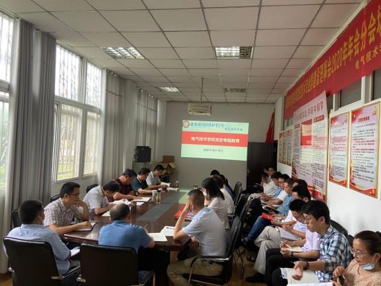 为深入学习贯彻习近平总书记在党史学习教育动员大会上发表的重要讲话精神,全面落实党史学习教育各项工作要求,6月16日下午,校党委委员、副校长丁守宝为电气技术学院全体教职工和学生党员上党课。会议由电气技术学院党总支书记王希江主持。