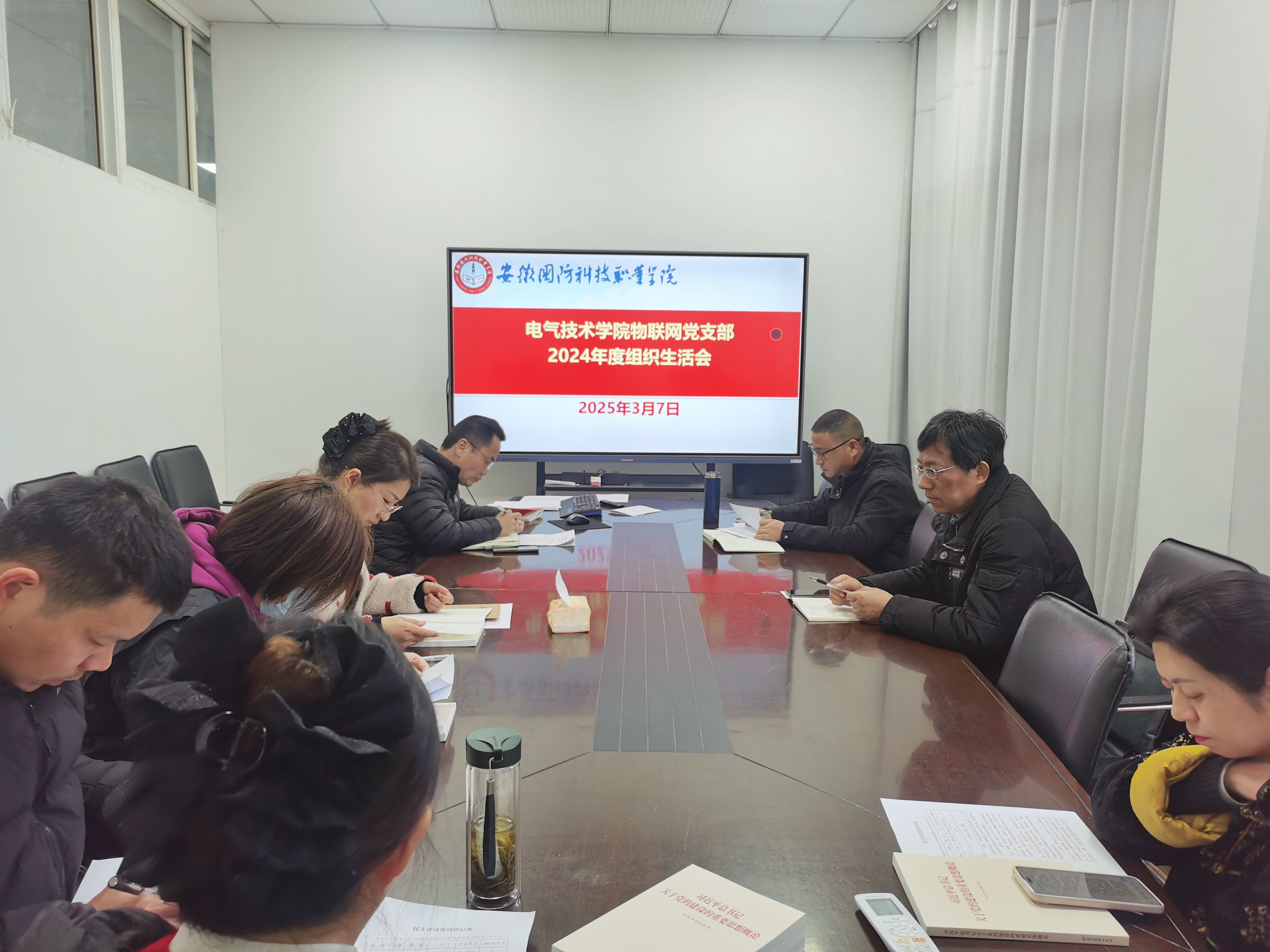 (本网讯 电气技术学院 史媛芳)为深入学习贯彻习近平新时代中国特色社会主义思想和党的二十届三中全会精神,巩固深化党纪学习教育成果,3月7日下午,电气技术学院物联网党支部在知行楼102会议室召开了2024年度组织生活会,并开展了民主评议党员工作。校党委委员、副校长袁旗及支部全体党员参加此次会议,会议由支部书记江治国主持。