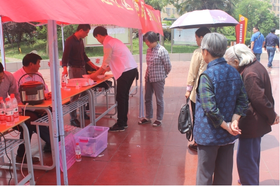 早上,志愿者们在社区工作人员的帮助下搬运工具,摆放桌椅,连接电源,不久便吸引了居民们纷纷带着电饭煲、小风扇、电磁炉等废旧家用电器前来维修电气技术学院的师生们仔细检查并询问家电的损坏情况,一丝不苟地诊断每一件电器所存在的问题专心致志地修理每一部电器,利用自身所学知识竭尽所能为前来的社区居民解决电器故障,对家电进行“手术”抢救。
