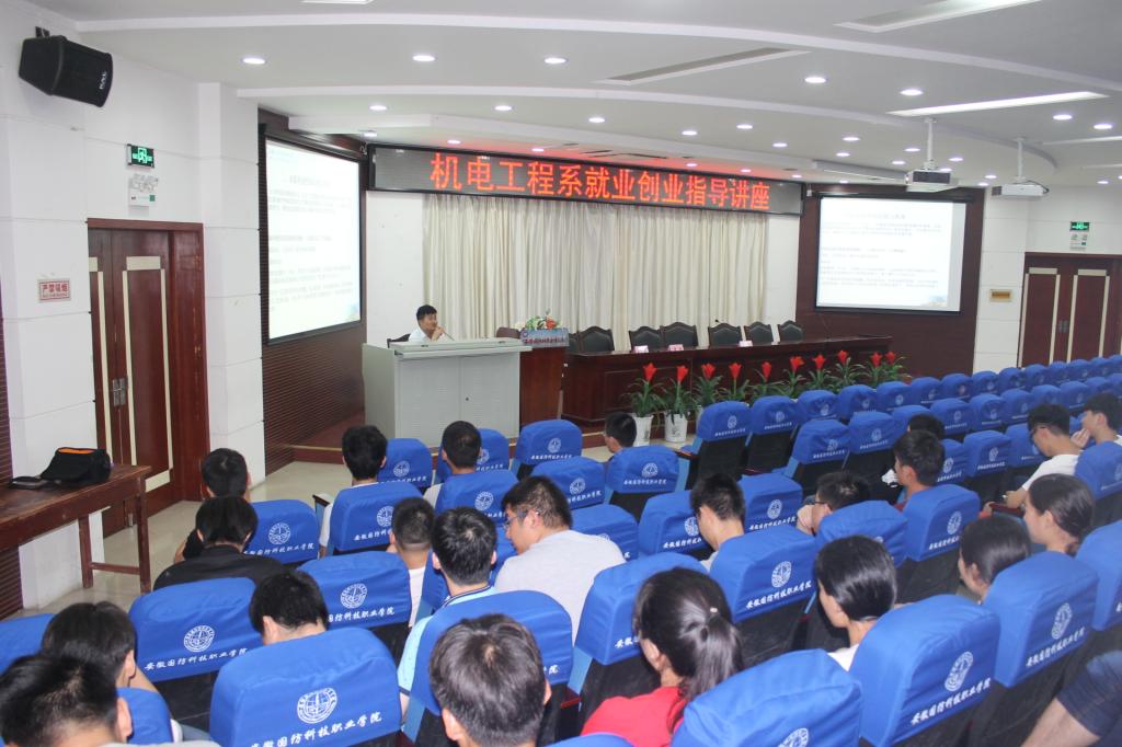为贯彻落实“大众创业、万众创新”精神,激发广大学生的创业热情,普及就业创业知识,培养学生职业精神和创业意识,提高学生的就业创业能力,扎实推进高水平大学建设。2016年6月14日晚7:30,机电工程系邀请安徽三安光电有限公司人力资源部招聘课长苏勇来校给我系14级机电一体化技术、电气自动化技术等专业学生,作一场题为“激流·勇者进”的就业创业指导讲座。14级200余名学生聆听了讲座,讲座由机电工程系党总支副书记罗威主持。