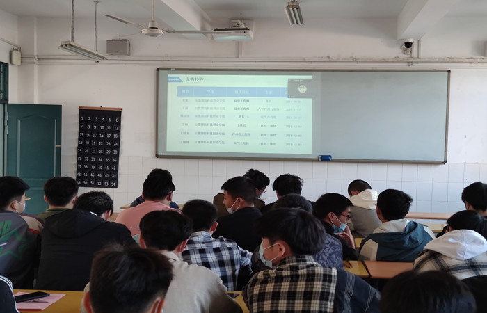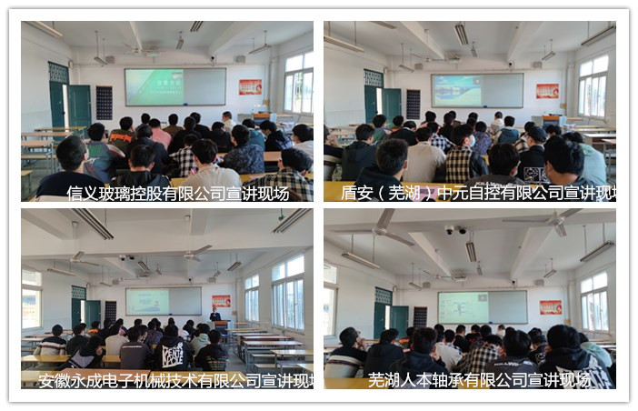 此次会议邀请了安徽永成电子机械技术有限公司、盾安(芜湖)中元自控有限公司、芜湖人本轴承有限公司、信义玻璃控股有限公司四家企业,首先由安徽永成电子机械技术有限公司在2教107进行线下宣讲,接着盾安(芜湖)中元自控有限公司等三家公司通过腾讯会议进行线上宣讲,每家企业对各自企业基本情况、岗位需求、实习安排、工资待遇等情况进行了详细的讲解,过程中同学们就不清楚的问题与企业进行了充分的沟通。