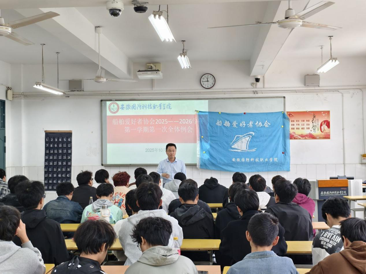 本网讯 (学生通讯员鲁财亿)10月16日中午,船舶爱好者协会在2教106教室召开2025—2026学年第一次工作例会。会议由协会会长鲁财亿主持,协会指导老师程坤出席并发表讲话。