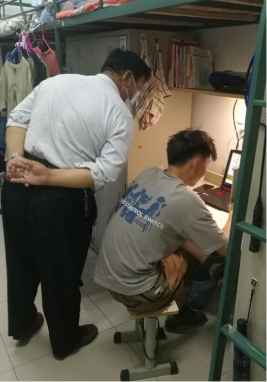 为切实做好校园疫情防控,了解第一批返校学生思想动态,落实学校开学疫情防控“两案八制”相关工作要求,增强学生自我防范意识,确保第一批学生返校后学习生活的正常有序进行。5月19日晚,电气技术学院党总支书记王希江和相关班级班主任老师走访了学生宿舍,主要对宿舍内务卫生及每日消毒情况、宿舍通风、安全用电用水及疫情防控基本常识等存在的问题及隐患进行检查和排查。