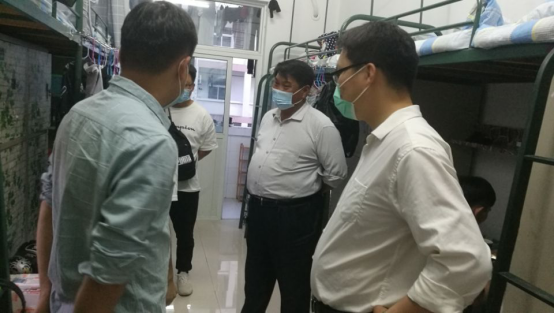 在走访检查过程中,王希江书记关切地询问同学们返校后的在生活和学业上的需要和帮助,强调在防疫期间,一定要做好宿舍内务整理,保证宿舍安全干净整洁,维持良好宿舍环境,做好个人卫生防护,勤开窗通风,定期消毒;叮嘱同学们出门戴好口罩,勤洗手等做好个人防护,按要求做好晨午晚三次体温检测。提醒同学们有困难及时与辅导员和班主任老师联系交流,共同努力把疫情对生活和学业的影响降到最低。